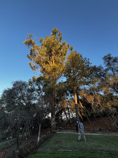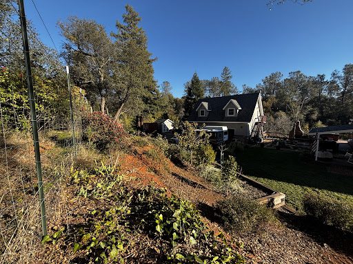 We had lots of thick brush and about 50-60 smaller trees – 4-12” diameter – that needed to go in order to prepare the home for fire season. We also had about 25 mature trees that needed some attention with limbing and the like. Our goal was to have an open stand while preserving the beauty that the oaks, cedars, madrones, pines and redwoods offer. The property is not flat and some of the slopes could have been a challenge.